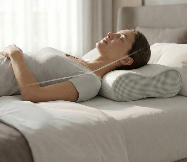 Progettato per chi soffre di rigidità al collo e vuole svegliarsi riposato. Due altezze in un solo cuscino: scegli quella giusta per te.